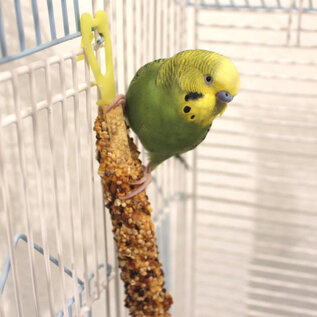 Hang Crunch Stick inside your parakeet's habitat using the attached holder. Fresh, clean water should be available at all times.