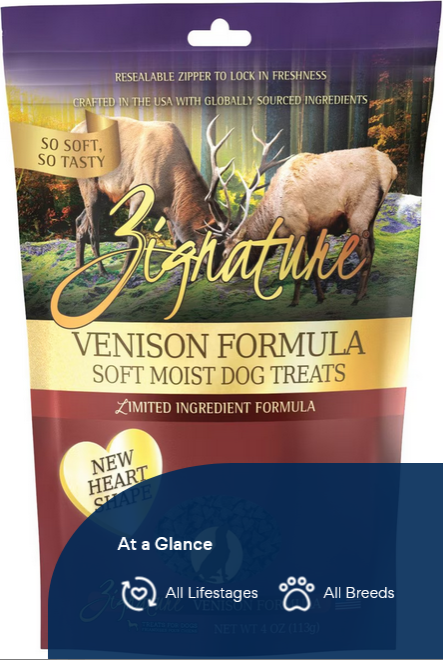 ZIGNATURE DOG SOFT MOIST TREATS GRAIN FREE VENISON 4OZ