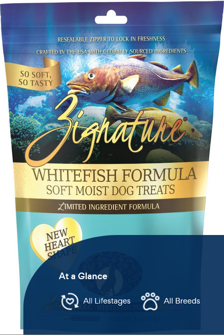 ZIGNATURE DOG SOFT MOIST TREATS GRAIN FREE WHITEFISH 4OZ
