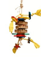Dynamite bird toy is made of natural paper rope, cotton rope, with several wood parts in softwood. Many different shapes including shedded cardboard.